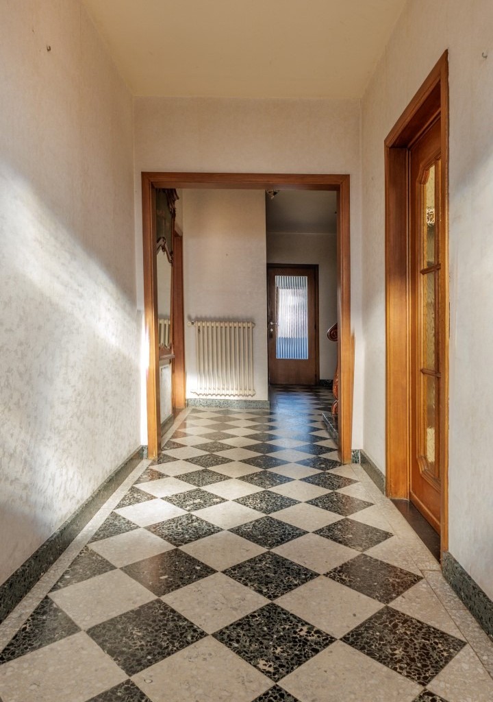 Op de gelijkvloerse verdieping bevindt zich een indrukwekkende inkomhal, een aangename bureauruimte en een ruime wijnkelder/voorraadkamer. Daarnaast zijn er een (hobby)kamer met uitzicht op de tuin, een verwarmingsruimte, een wasruimte en een apart toilet. De woning beschikt bovendien over een inpandige garage (ca 22m²) en een oprit met plaats voor vier wagens.