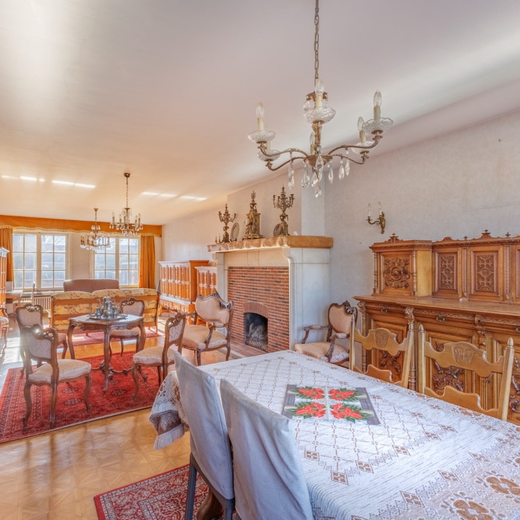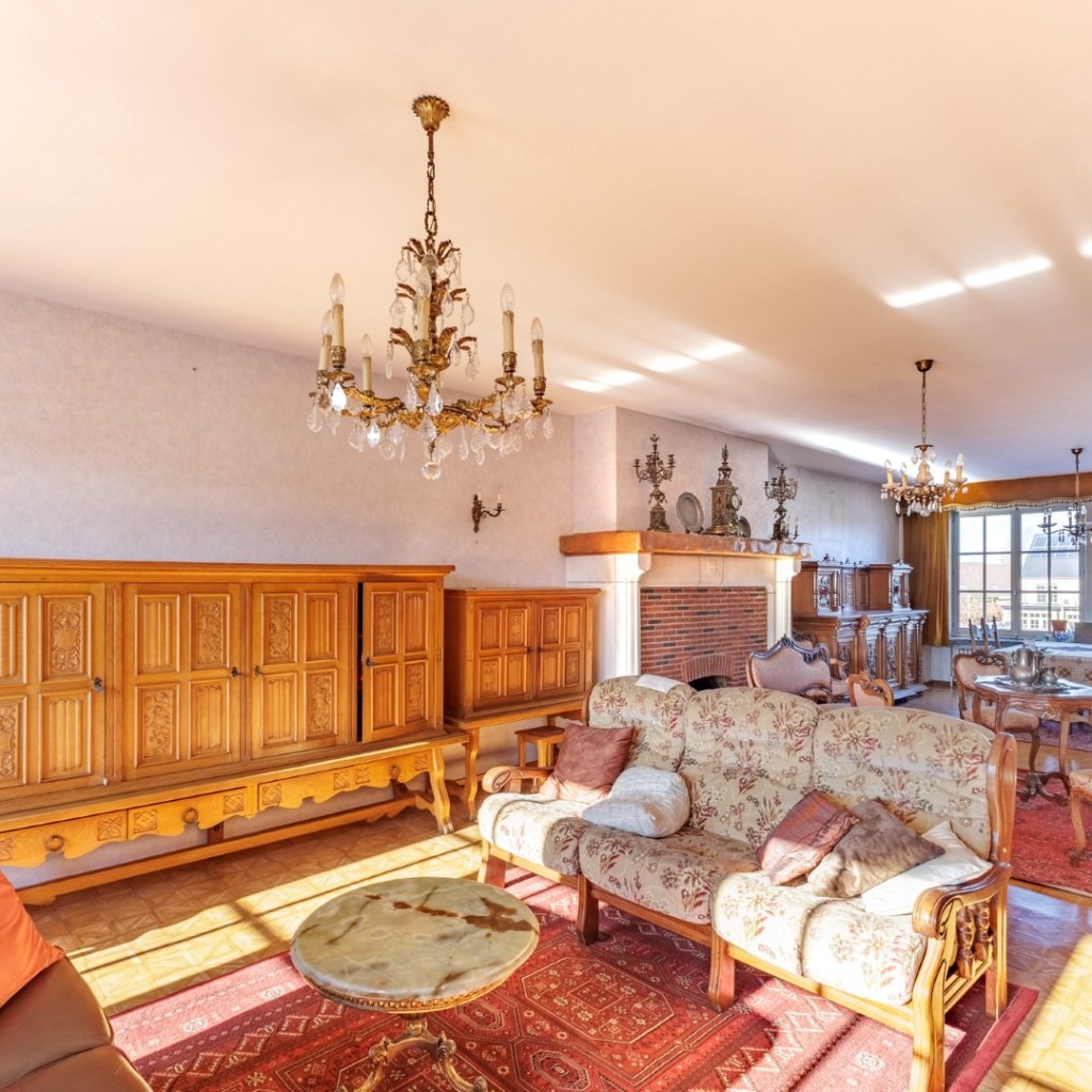 De eerste verdieping omvat een ruime en lichtrijke living (ca 54m²), een aparte eetplaats (ca 18m²), een keuken en een gastentoilet. Op de tweede verdieping bevinden zich vier slaapkamers (24m², 22m², 15m² en 11m²), waaronder een royale slaapkamer met ingebouwde kasten en een slaapkamer met dressing. De badkamer met toilet zorgt voor extra comfort. De zolder -bereikbaar via een vaste trap- is een volwaardige verdieping met mogelijkheden voor extra kamers of een hobbyruimte. Dankzij de grote raampartijen geniet de woning van een overvloed aan natuurlijk licht, wat de ruimtes aangenaam en uitnodigend maakt. De prachtige tuin maakt het geheel compleet. Het doordachte ontwerp van architect J.E. Dieltjens en de solide bouwkwaliteit (de woning is opgetrokken uit een betonnen structuur) maken van deze woning een stijlvolle, comfortabele en veelzijdige woonplek.