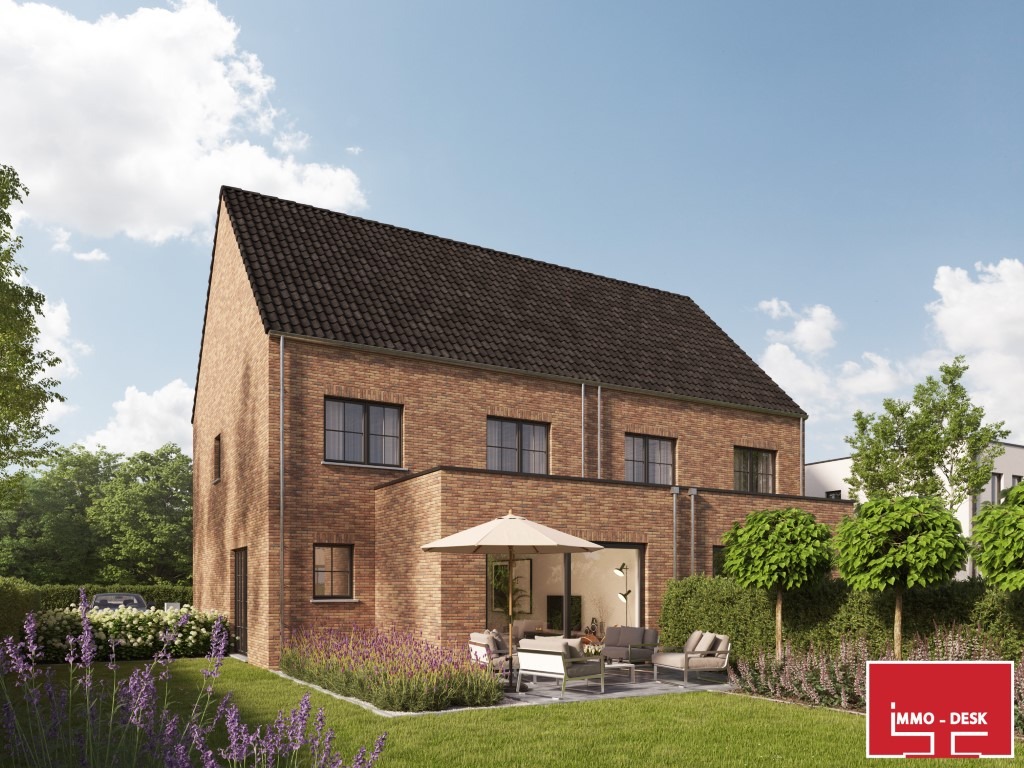Te koop: halfopen nieuwbouwwoning in een landelijke omgeving op een bouwgrond met weiland, samen ca 3447 m². Deze woning is nog nieuw te bouwen. Dit kan à la carte, gaande van de bouwstijl, indeling, tot en met de materiaal- en kleurkeuzes. en dit alles onder professionele begeleiding. De voorbeeldwoning bestaat uit een ruime inkomhal, open keuken, leefruimte en gastentoilet. Op de 1ste verdieping is er een nachthal, 3 slaapkamers en badkamer. De zolderverdieping is een volwaardige ruimte. Buiten is er nog een aangename tuin en ruimte voor 2 parkeerplaatsen.