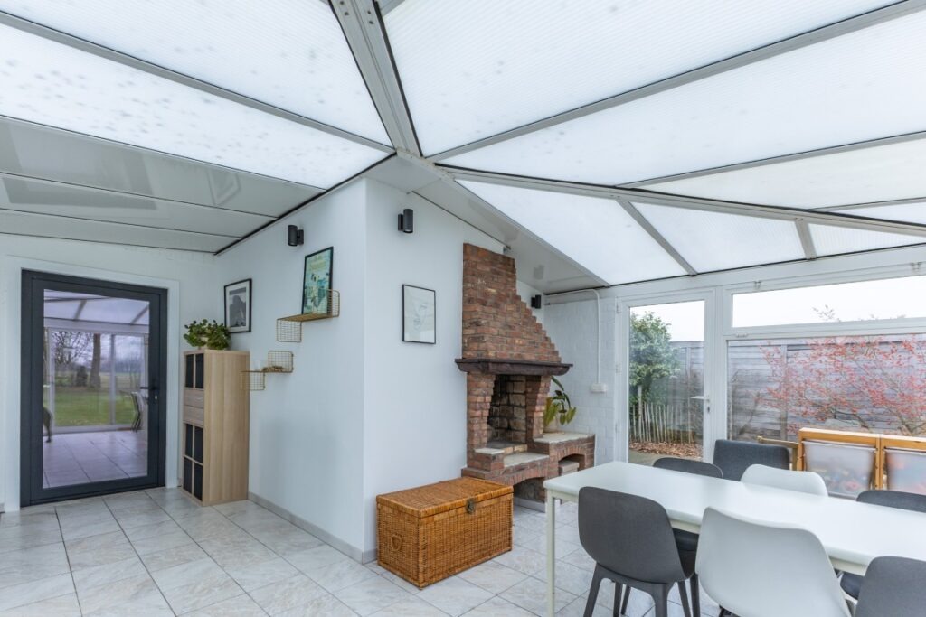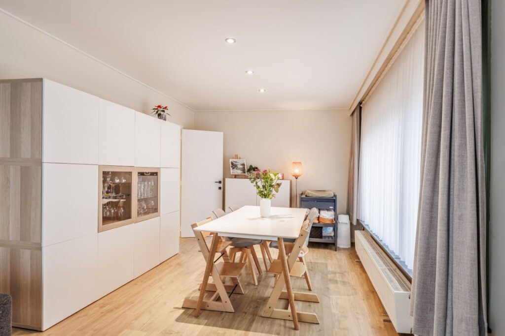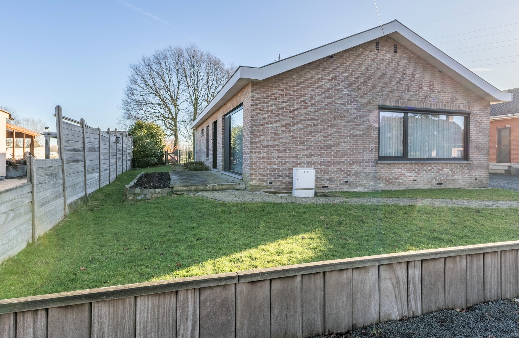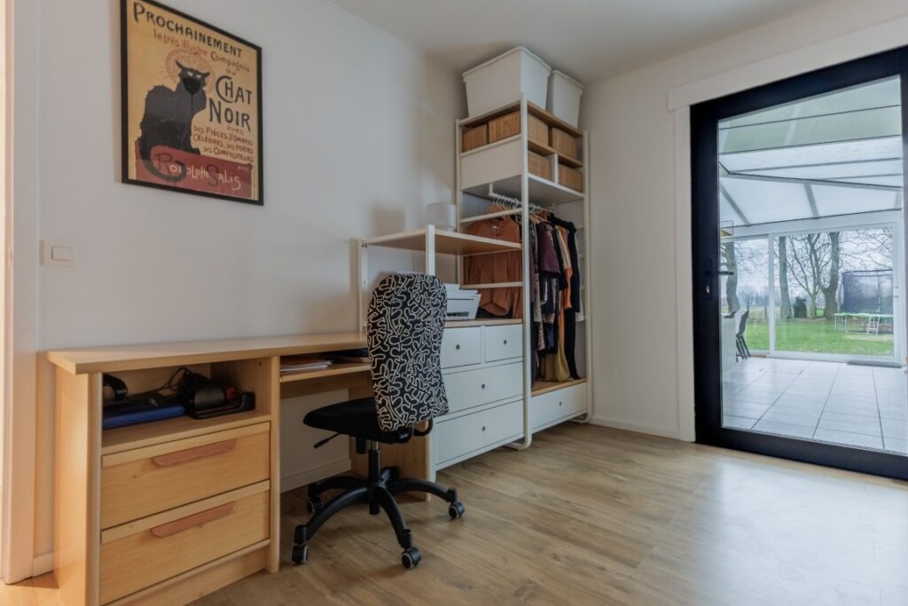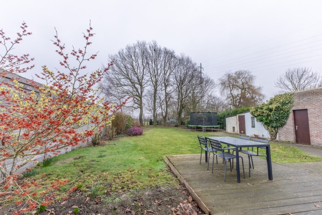 Deze instapklare bungalow, rustig gelegen in de Baardegemsestraat 6 te Lebbeke, werd ongeveer vijf jaar geleden volledig vernieuwd en biedt comfortabel gelijkvloers wonen op een ruim perceel van 11 are 48 ca. De woning beschikt over drie volwaardige slaapkamers en een bureau, ideaal voor thuiswerk of als hobbyruimte. De gezellige leefruimte sluit mooi aan op de keuken. Verder zijn er nog een ruime berging, een apart gastentoilet en een badkamer met douche en toilet. Achteraan bevindt zich een aangename veranda met directe toegang tot het terras en de tuin. In de grote, aangename tuin geniet men van prachtig groenzicht. Vooraan zorgt een verzorgde voortuin voor een uitnodigende uitstraling van de woning. Daarnaast is er een handige zij-ingang en een garage met extra bergruimte. Op de ruime oprit is er plaats voor vier wagens.