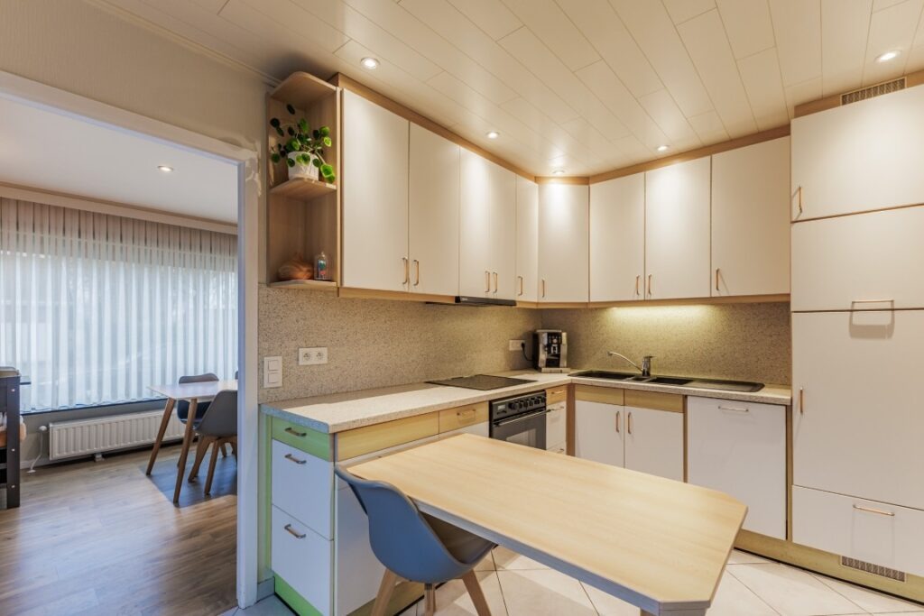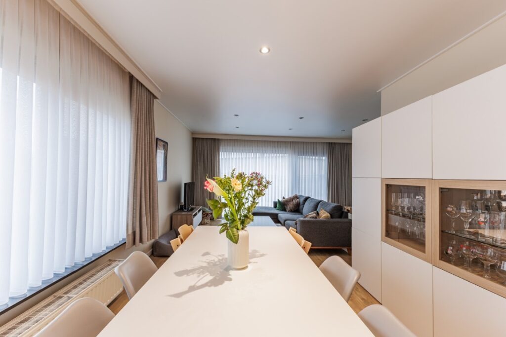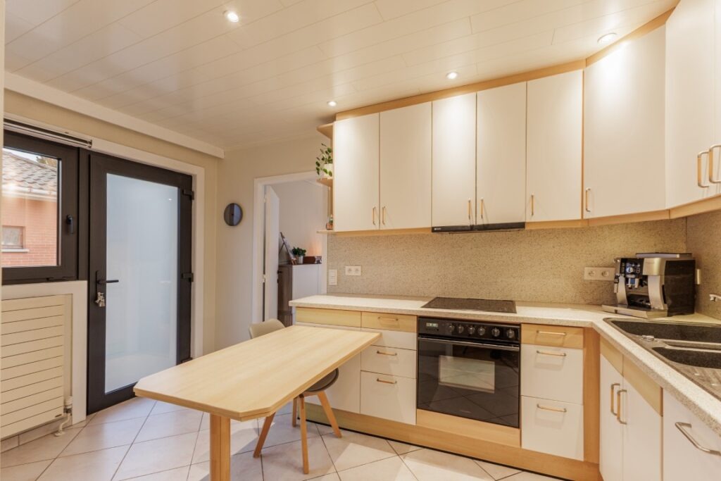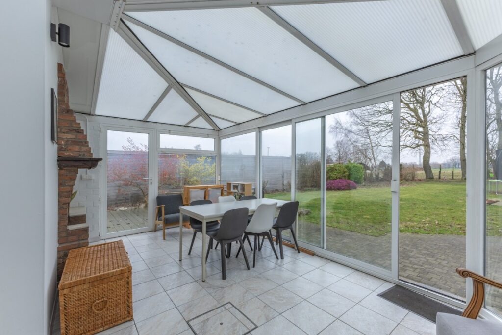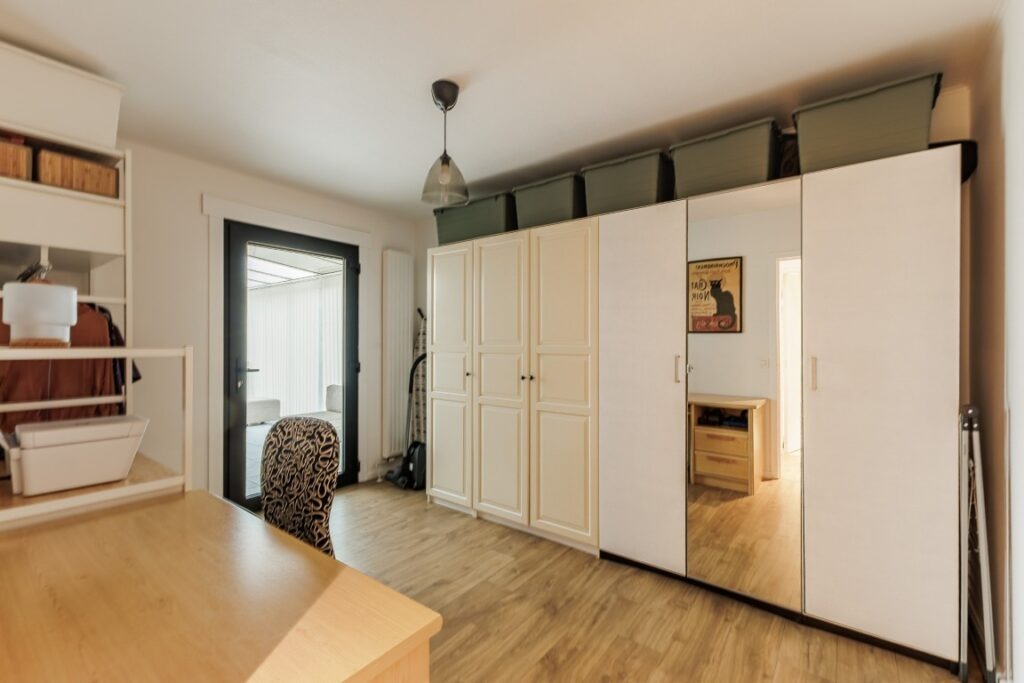 Deze instapklare bungalow, rustig gelegen in de Baardegemsestraat 6 te Lebbeke, werd ongeveer vijf jaar geleden volledig vernieuwd en biedt comfortabel gelijkvloers wonen op een ruim perceel van 11 are 48 ca. De woning beschikt over drie volwaardige slaapkamers en een bureau, ideaal voor thuiswerk of als hobbyruimte. De gezellige leefruimte sluit mooi aan op de keuken. Verder zijn er nog een ruime berging, een apart gastentoilet en een badkamer met douche en toilet. Achteraan bevindt zich een aangename veranda met directe toegang tot het terras en de tuin. In de grote, aangename tuin geniet men van prachtig groenzicht. Vooraan zorgt een verzorgde voortuin voor een uitnodigende uitstraling van de woning. Daarnaast is er een handige zij-ingang en een garage met extra bergruimte. Op de ruime oprit is er plaats voor vier wagens.