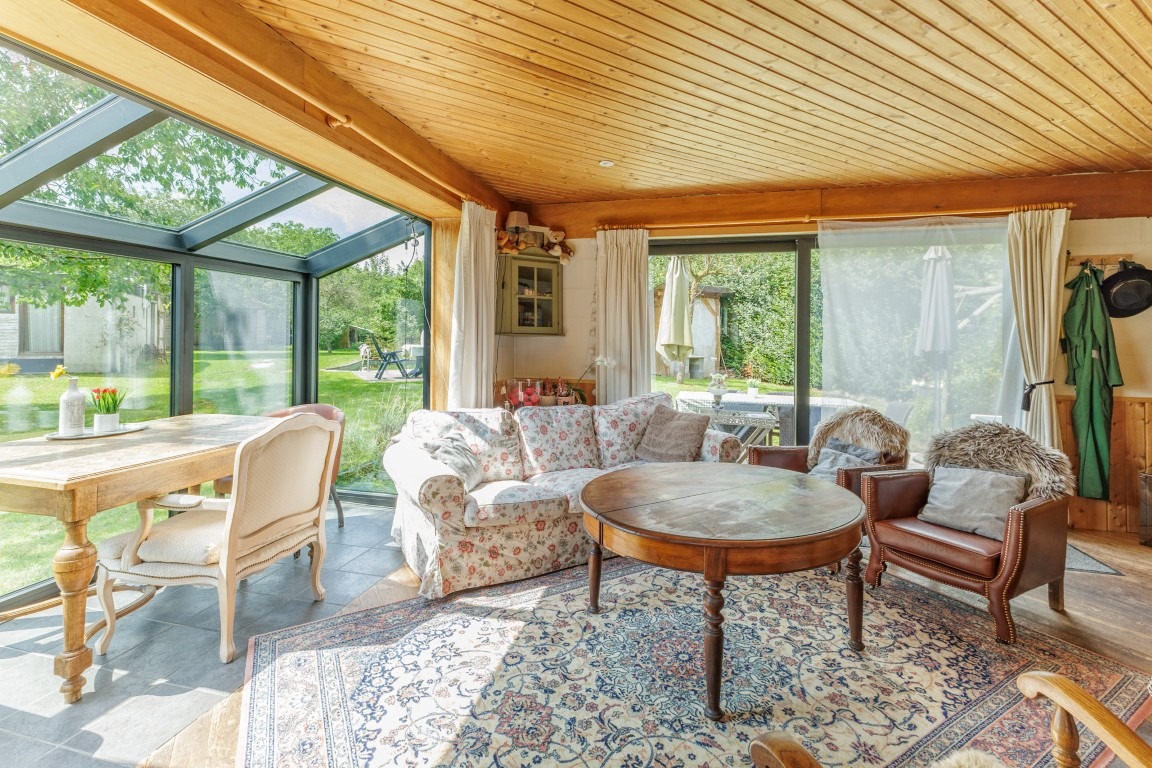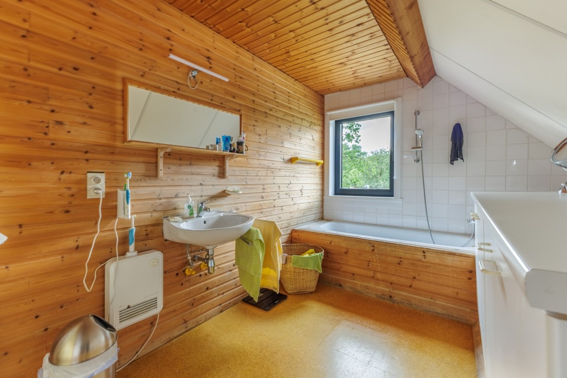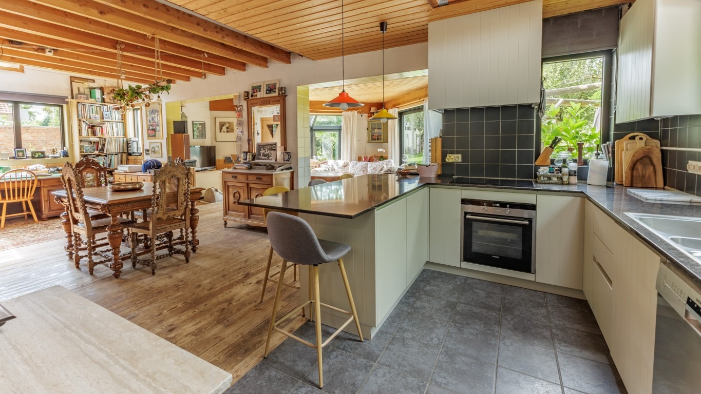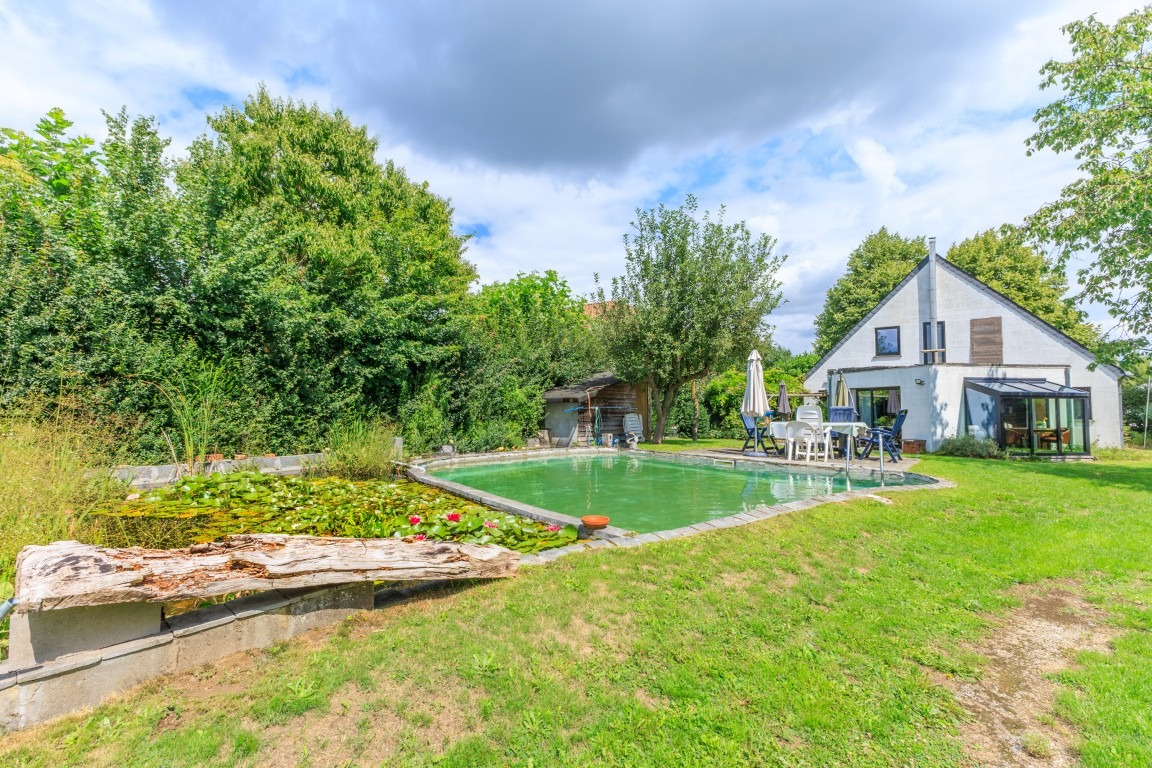 De woning werd goed onderhouden en recent werden alle ramen vernieuwd. Buiten is het heerlijk vertoeven op het grote terras met zicht op de prachtige tuin, waar een unieke vijver werd aangelegd die deels dienstdoet als zwemvijver en deels als chloorvijver. Verder bevindt zich op het terrein een atelier/hobbyruimte uitgerust met zonnepanelen, een ruime oprit geschikt voor het parkeren van minstens vijf wagens en achteraan in de tuin staat een loods (niet vergund). De combinatie van een rustige ligging in het groen met een centrale bereikbaarheid maakt van deze locatie een echte troef. De woning bevindt zich in een aangename omgeving met vlotte verbindingen naar het centrum van Lebbeke, scholen, winkels, het station en belangrijke uitvalswegen richting Dendermonde, Aalst en Brussel. Ideaal gelegen voor wie op zoek is naar rust, ruimte en een landelijke omgeving, zowel voor gezinnen als voor wie werk- of opslagruimte aan huis nodig heeft. Geen renovatieverplichting.