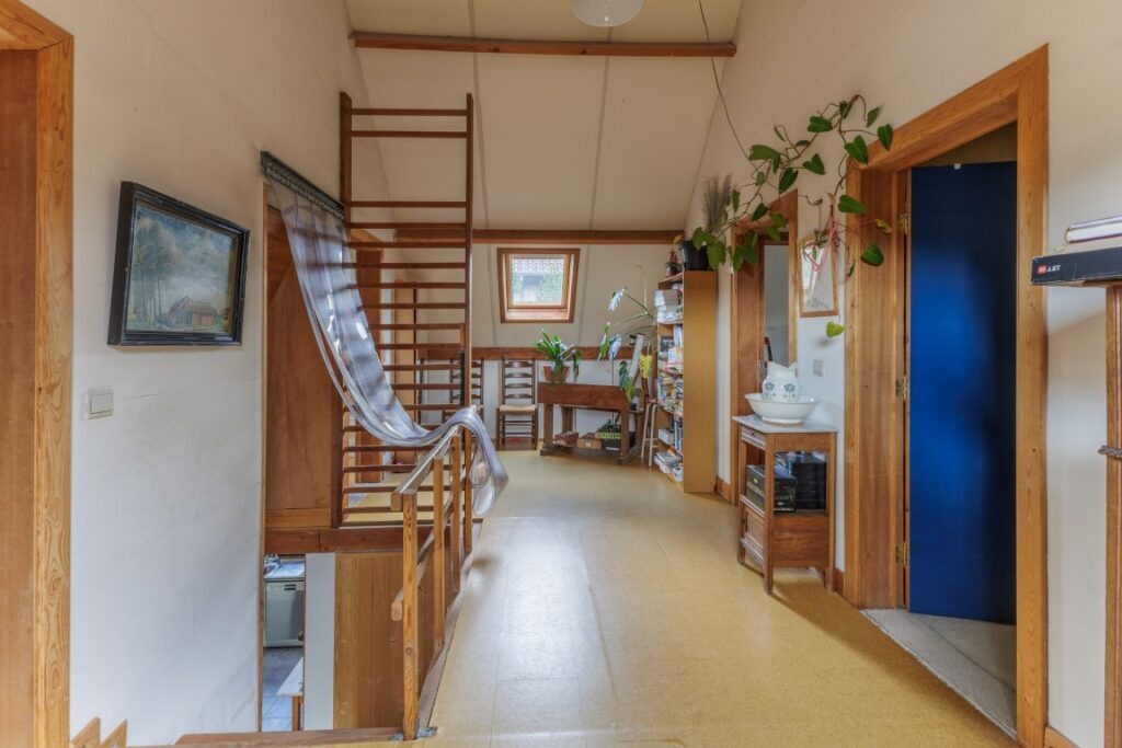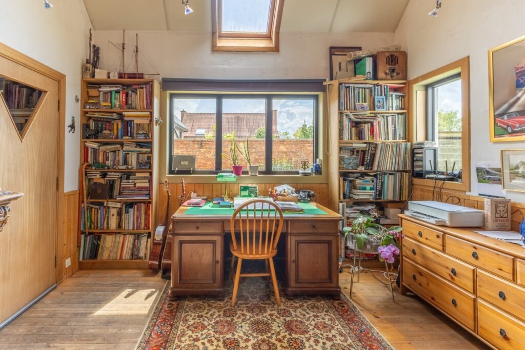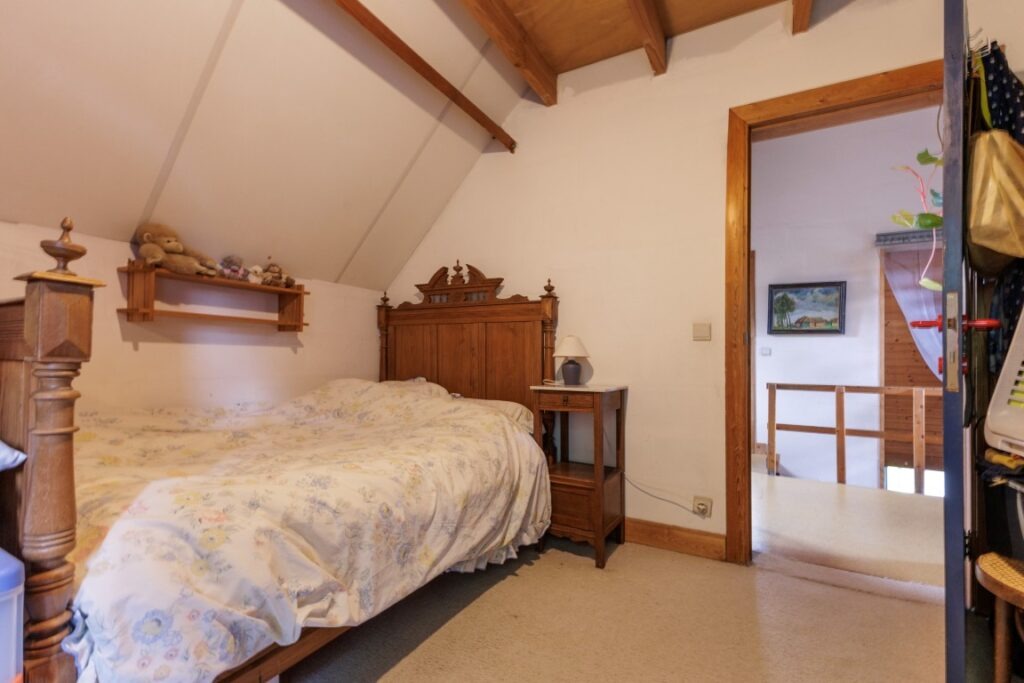 In de Grote Snijdersstraat te Lebbeke bevindt zich deze vrijstaande woning op een uitzonderlijk perceel van 45a 15ca, omgeven door groen en rust. Bij het betreden van de woning kom je binnen in een ruime inkomhal die toegang geeft tot de lichtrijke leefruimte met bureau en open ingerichte keuken. Aansluitend bevindt zich het gastentoilet, een praktische berging en inpandige garage met plaats voor twee wagens. Op de eerste verdieping zijn er drie volwaardige slaapkamers, een badkamer met ligbad en een zolderruimte die extra mogelijkheden biedt.