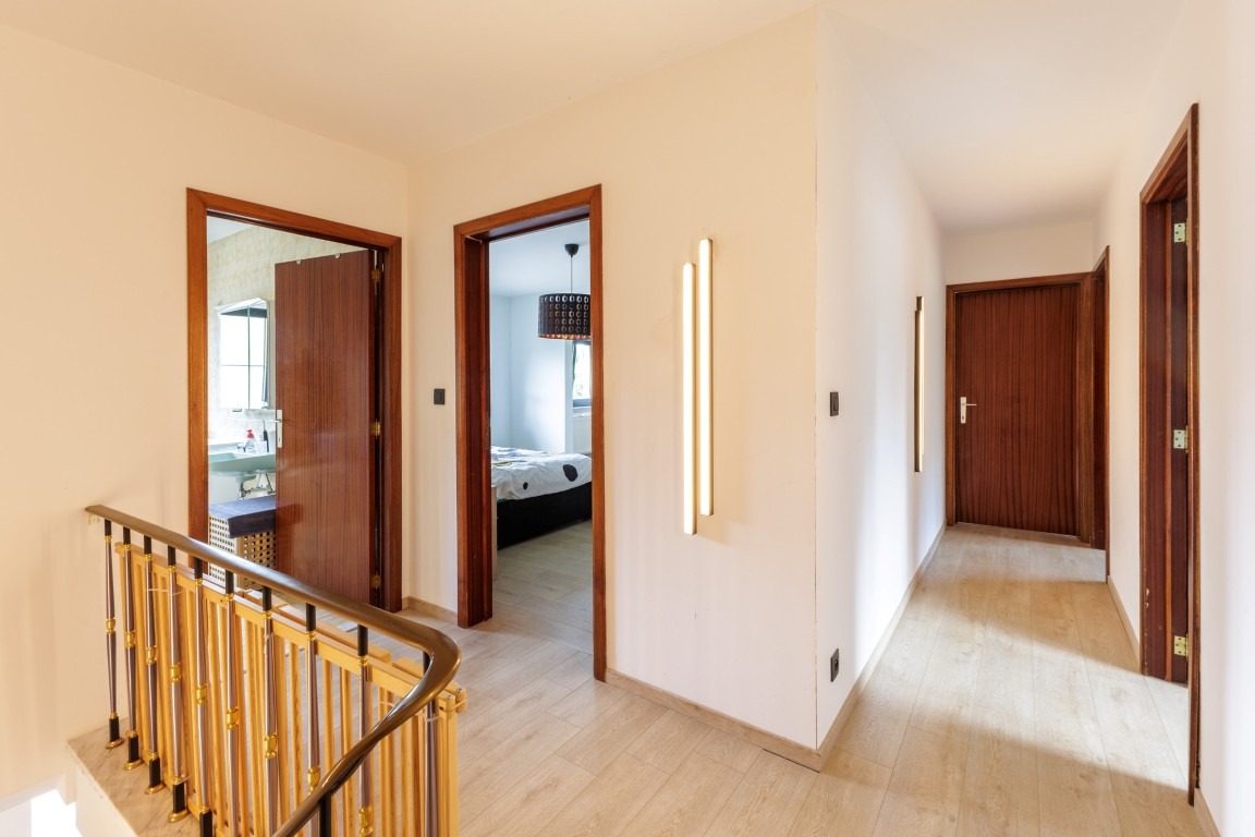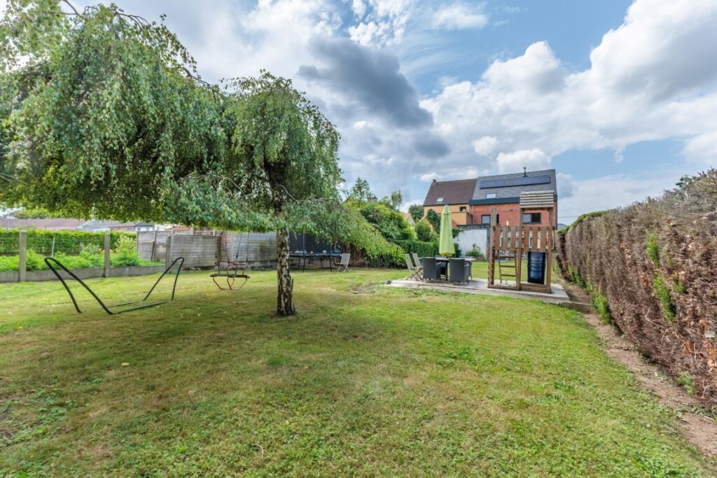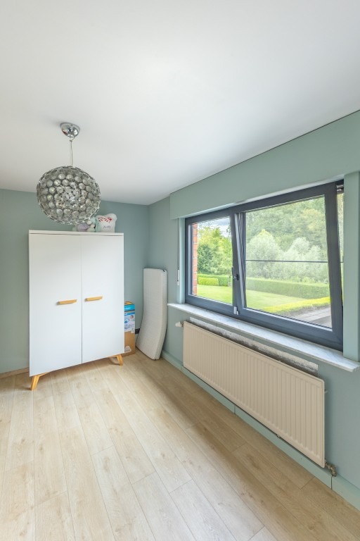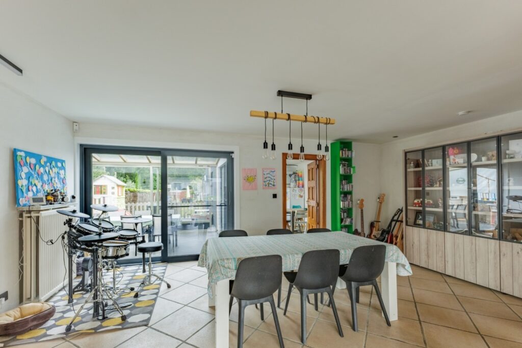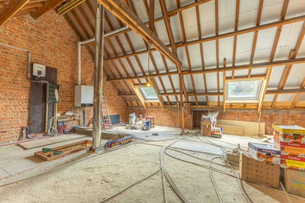 Deze ruime, instapklare woning bevindt zich op een prachtig perceel van 9a 54ca in een bijzonder groene omgeving en op slechts tien minuten wandelen van station Lede met rechtstreekse verbindingen naar Gent en Brussel. Scholen bevinden zich op wandel- en fietsafstand en het bos achter en deels naast het perceel ligt in een beschermde groene zone, zodat de natuurlijke rust behouden blijft. Bij het betreden van de woning kom je binnen in een aangename inkomhal die leidt naar de grote, lichtrijke leefruimte (43m²). De gezellige zithoek is uitgerust met een houthaard, wat zorgt voor extra sfeer en warmte. Aansluitend vind je de recent vernieuwde, volledig uitgeruste keuken (24,5 m²) en een veranda met zicht op het terras en de diepe tuin. De woning beschikt ook over een ruime garage met plaats voor twee wagens, terwijl op de oprit nog extra parkeerruimte is voor minstens drie wagens. Buiten is er bovendien een handige bergruimte, ideaal voor tuinmateriaal, fietsen of extra opslag. Op de eerste verdieping bevinden zich drie volwaardige slaapkamers (20m², 14m² en 14m²) en een badkamer met ligbad en douche-in-bad. Eén van de slaapkamers beschikt over een aparte dressingruimte (18m²). De zeer grote zolderverdieping (74m²) biedt enorm potentieel en laat toe om zonder veel moeite nog twee extra kamers te creëren – perfect voor een groot gezin, een hobbyruimte of bureau. De woning is technisch helemaal up-to-date: het dak werd vernieuwd en geïsoleerd, alle ramen en deuren werden recent vervangen, de elektriciteit is conform en er werd een nieuwe gasinstallatie geplaatst. Ook de zijgevel werd geïsoleerd en er zijn zonnepanelen aanwezig. Deze woning combineert ruimte, comfort en een uitstekende energieprestatie met een rustige, natuurlijke ligging. Een ideale opportuniteit voor wie op zoek is naar een instapklare gezinswoning met uitbreidingsmogelijkheden en een uitzonderlijk grote tuin in het groen.