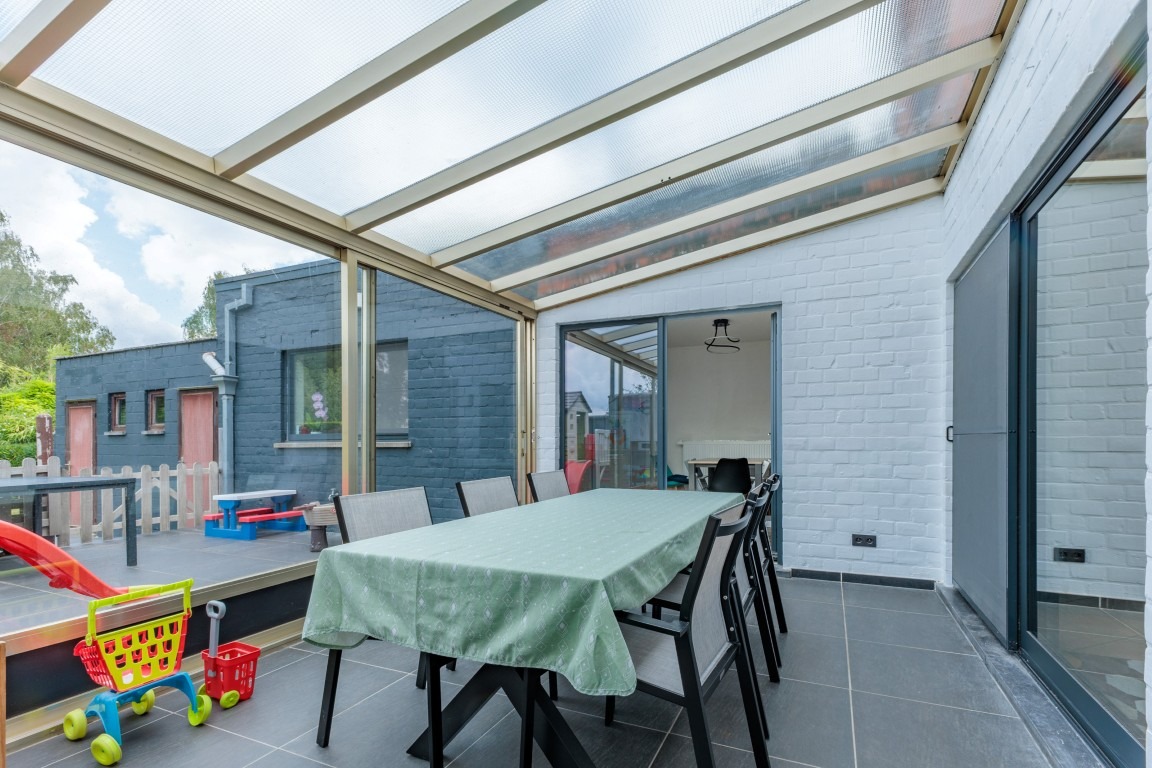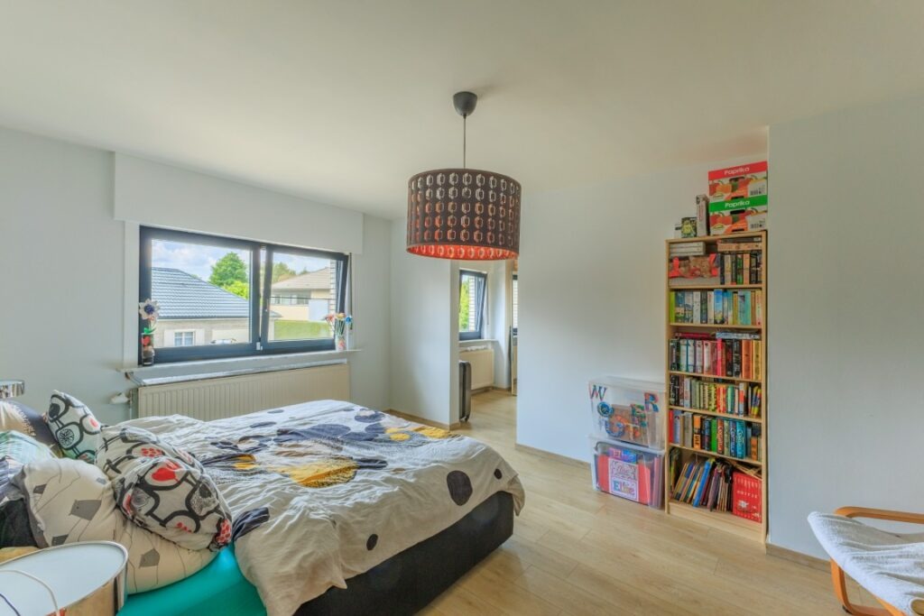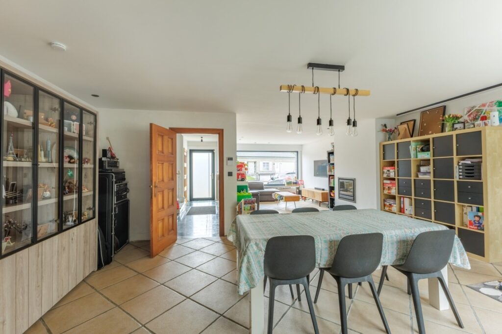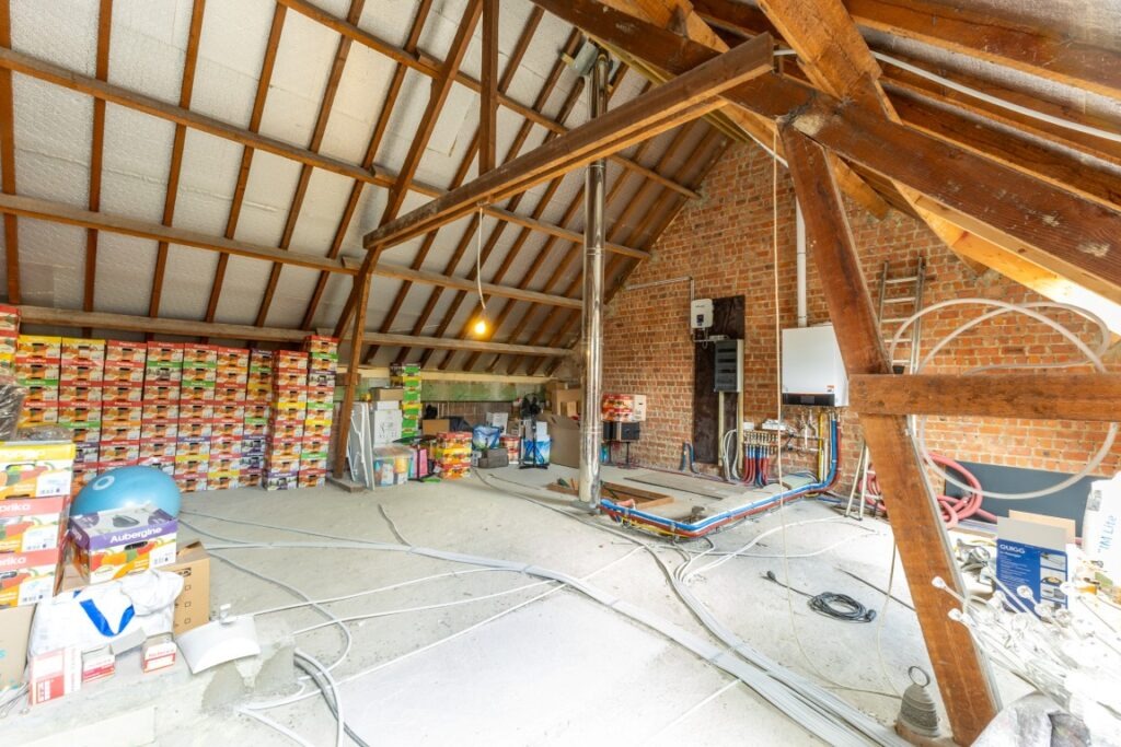 Deze ruime, instapklare woning bevindt zich op een prachtig perceel van 9a 54ca in een bijzonder groene omgeving en op slechts tien minuten wandelen van station Lede met rechtstreekse verbindingen naar Gent en Brussel. Scholen bevinden zich op wandel- en fietsafstand en het bos achter en deels naast het perceel ligt in een beschermde groene zone, zodat de natuurlijke rust behouden blijft. Bij het betreden van de woning kom je binnen in een aangename inkomhal die leidt naar de grote, lichtrijke leefruimte (43m²). De gezellige zithoek is uitgerust met een houthaard, wat zorgt voor extra sfeer en warmte. Aansluitend vind je de recent vernieuwde, volledig uitgeruste keuken (24,5 m²) en een veranda met zicht op het terras en de diepe tuin. De woning beschikt ook over een ruime garage met plaats voor twee wagens, terwijl op de oprit nog extra parkeerruimte is voor minstens drie wagens. Buiten is er bovendien een handige bergruimte, ideaal voor tuinmateriaal, fietsen of extra opslag. Op de eerste verdieping bevinden zich drie volwaardige slaapkamers (20m², 14m² en 14m²) en een badkamer met ligbad en douche-in-bad. Eén van de slaapkamers beschikt over een aparte dressingruimte (18m²). De zeer grote zolderverdieping (74m²) biedt enorm potentieel en laat toe om zonder veel moeite nog twee extra kamers te creëren – perfect voor een groot gezin, een hobbyruimte of bureau. De woning is technisch helemaal up-to-date: het dak werd vernieuwd en geïsoleerd, alle ramen en deuren werden recent vervangen, de elektriciteit is conform en er werd een nieuwe gasinstallatie geplaatst. Ook de zijgevel werd geïsoleerd en er zijn zonnepanelen aanwezig. Deze woning combineert ruimte, comfort en een uitstekende energieprestatie met een rustige, natuurlijke ligging. Een ideale opportuniteit voor wie op zoek is naar een instapklare gezinswoning met uitbreidingsmogelijkheden en een uitzonderlijk grote tuin in het groen.
