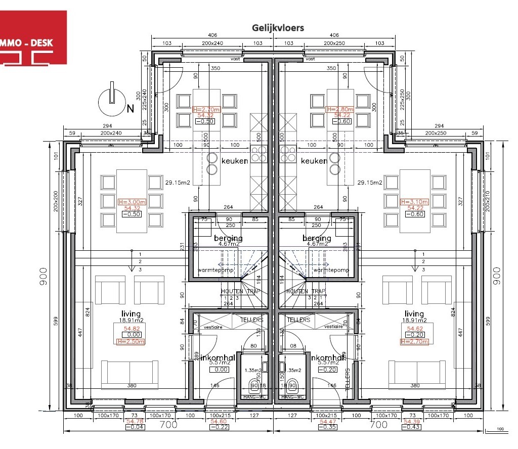 De vermelde prijzen zijn exclusief registratierechten op de grond en BTW op de constructiewaarde. Deze prijzen gelden voor de bouw volgens het huidige plan en conform de afwerking en materialen zoals gespecificeerd in het lastenboek. Dit omvat onder andere een volledig ingerichte keuken, badkamer, toiletten, centrale verwarming, zonnepanelen, driedubbele beglazing, warmtepomp en vloerverwarming op het gelijkvloers en in de badkamer.